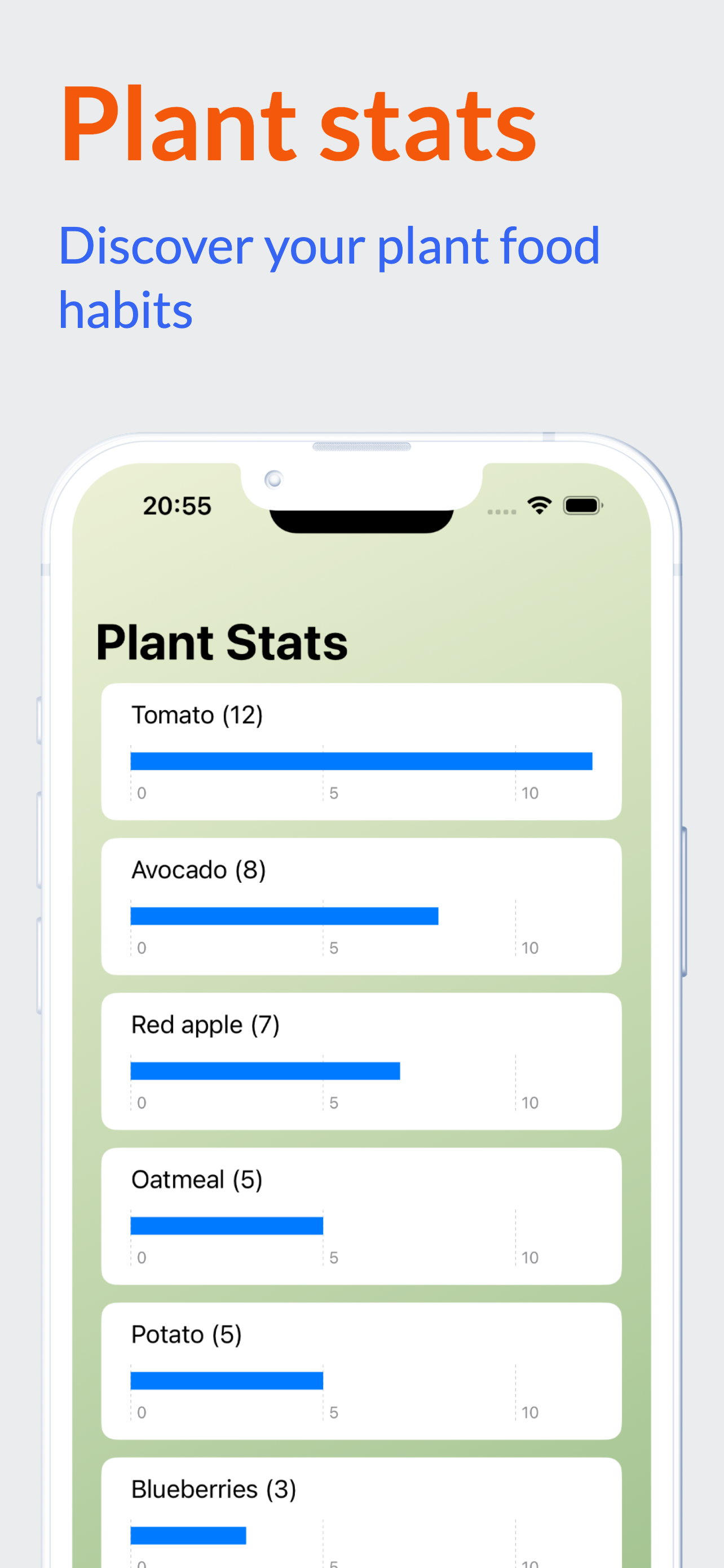 Our privacy policy is simple: We do not collect any data. All the data you register about the plant based foods you eat is saved locally on your phone. None of this data is shared with us or any third parties.